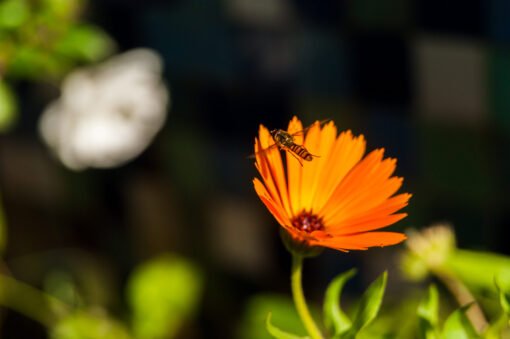Photo prise à Casablanca en 2018 qui montre un insecte s’approchant d’une fleur.